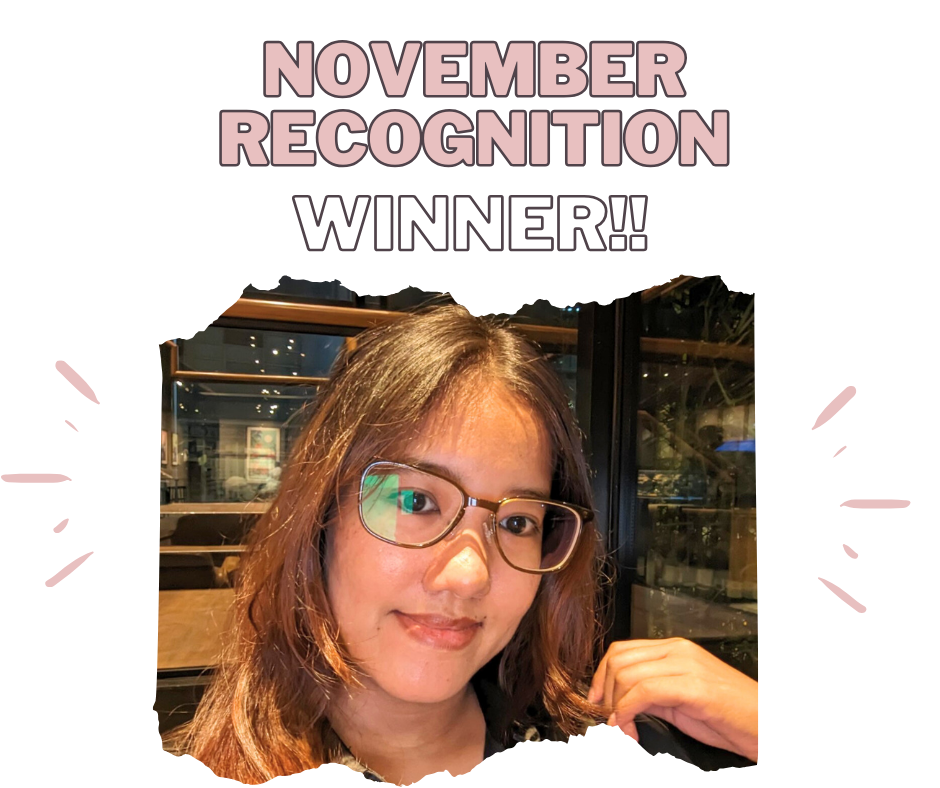 Each month, our team nominates a teammate who made a meaningful impact. These nominations come directly from peers and highlight those who offered support, stepped in when help was needed, or simply brought positivity to someone’s day. At the end of the month, the nominations are tallied and a Monthly Recognition winner is announced. November was a special reminder of the culture we’re building.